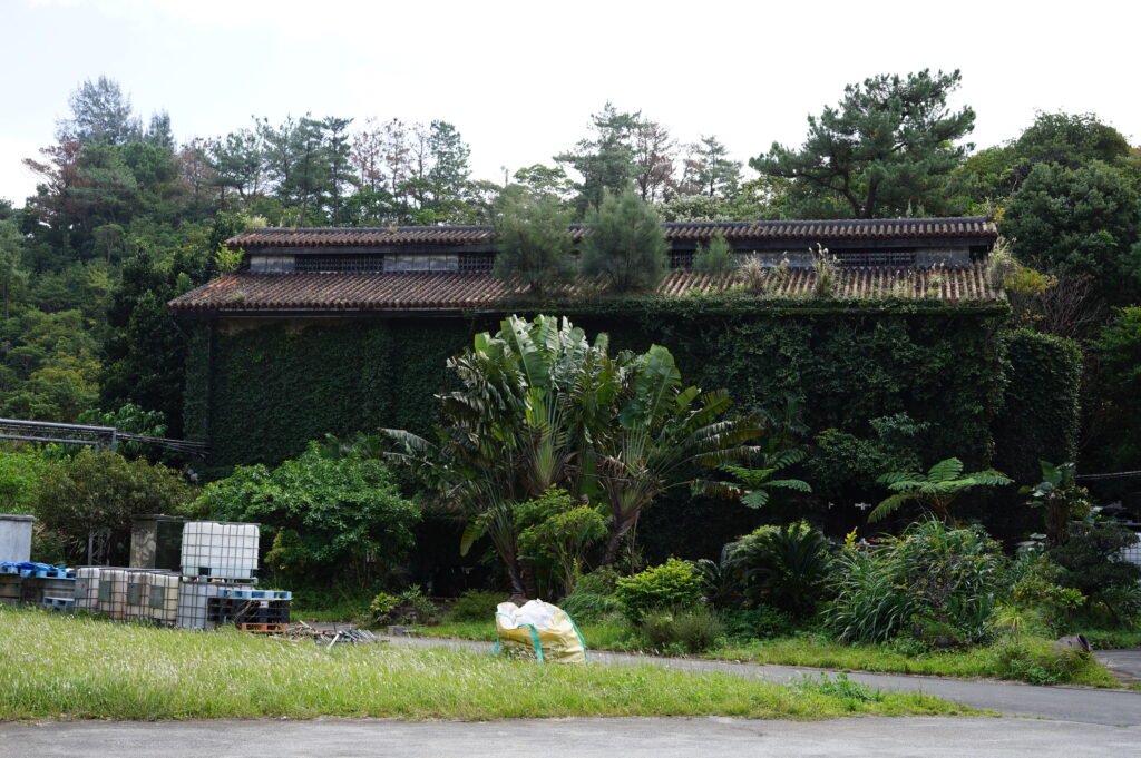 A pesar de estar en Okinawa, el almacén de envejecimiento, con sus paredes exteriores de piedra y sus suelos y paredes de hormigón, se mantiene agradablemente fresco incluso en verano debido al gran volumen de líquidos almacenados.